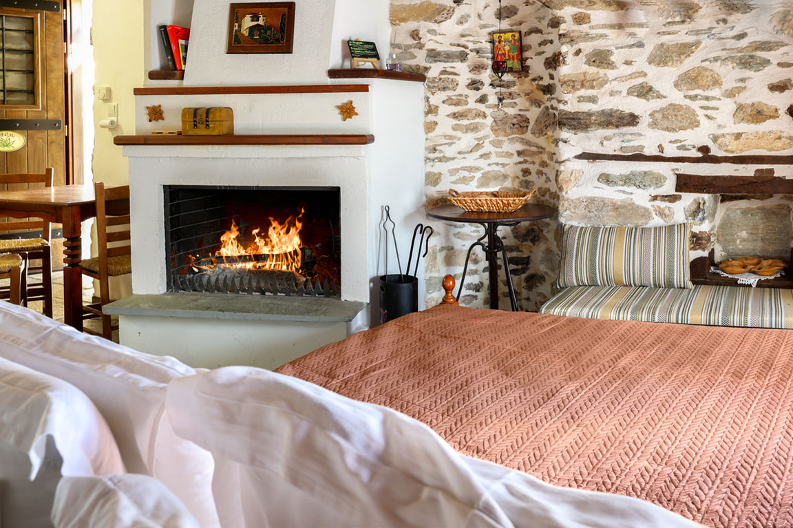 - Καλάθι καλωσορίσματος με τοπικά προϊόντα της περιοχής όπως κουλουράκια, μέλι, μαρμελάδα, τσάι βουνού, τσίπουρο