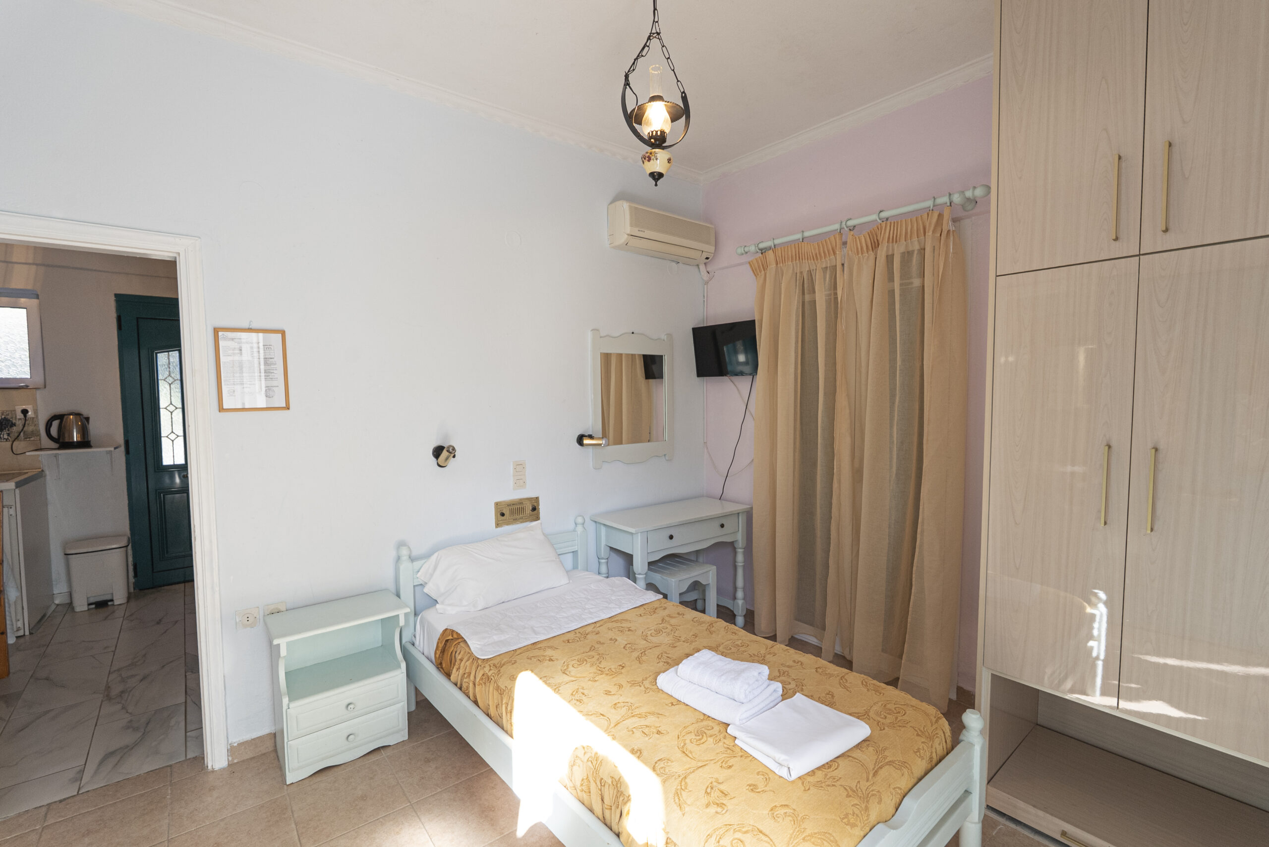 - Παροχές: Διαθέτει πλήρως εξοπλισμένη κουζίνα, ιδιωτικό μπάνιο, τηλεόραση και δωρεάν Wi-Fi.